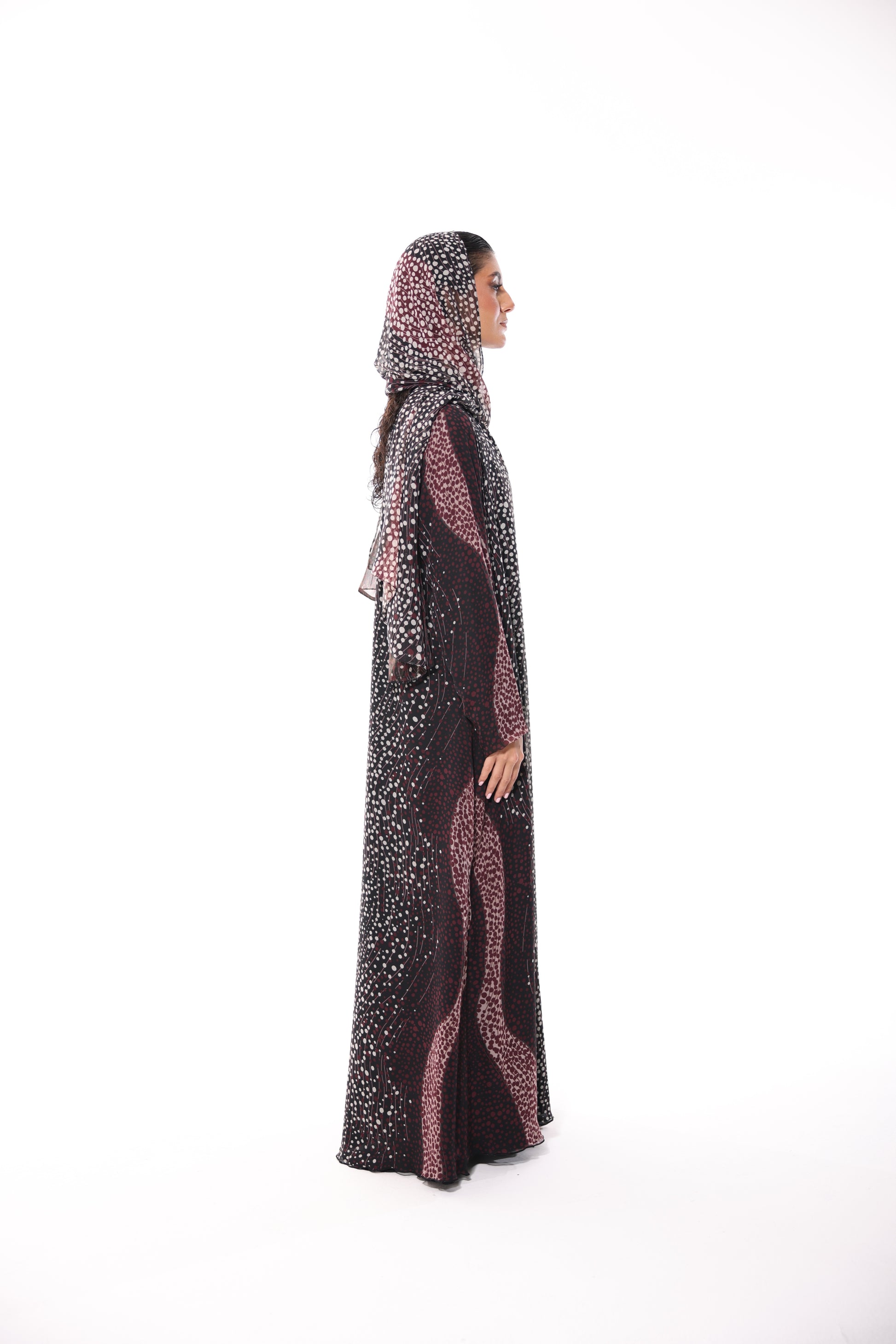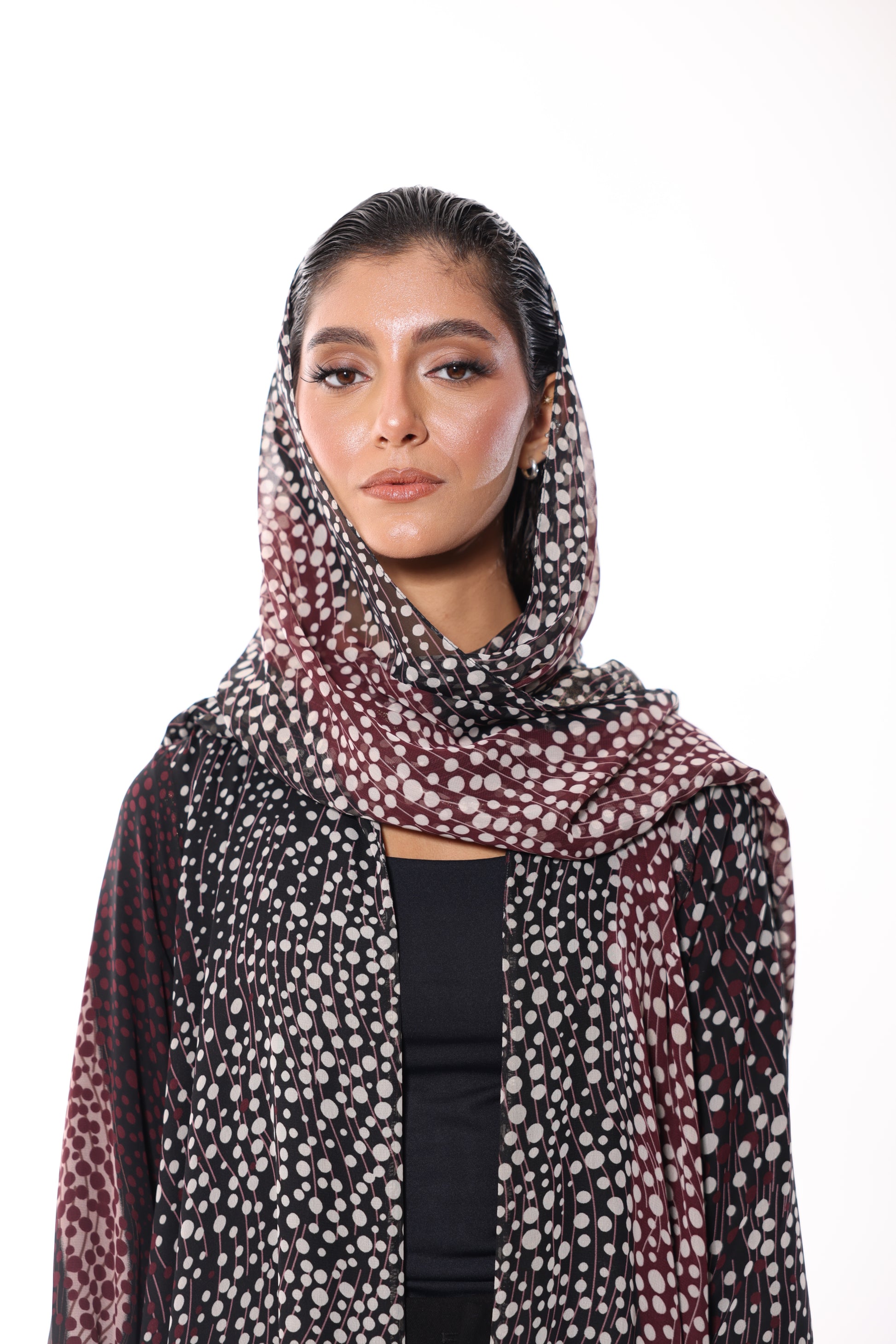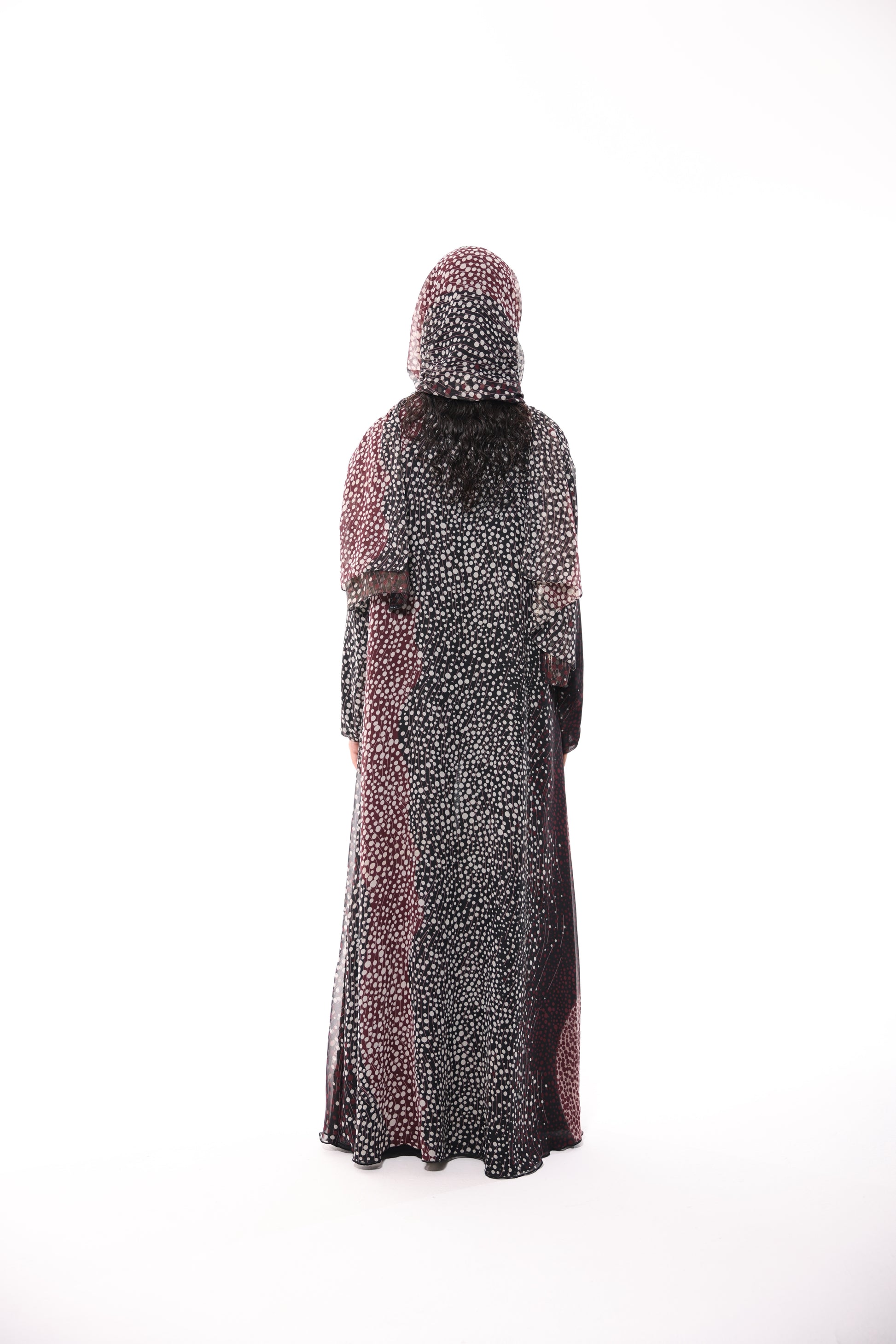• Dotted design in white and maroon